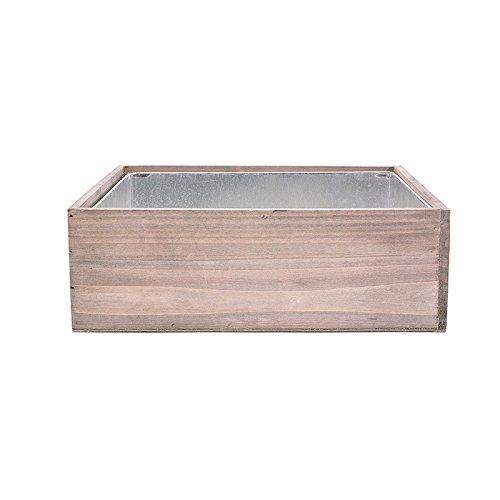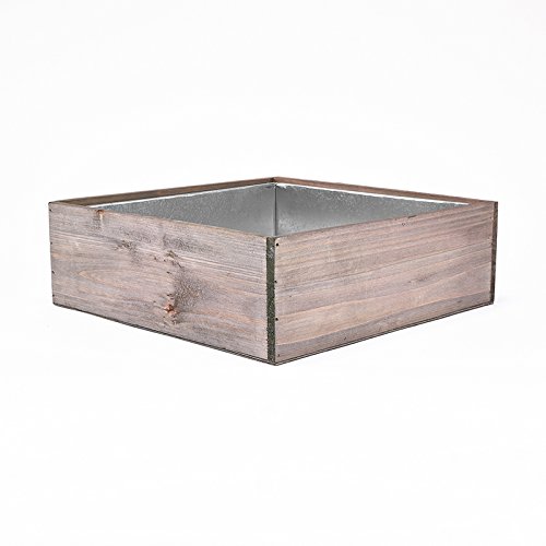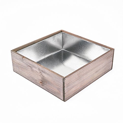 CYS EXCEL Natural Wood Square Box Wood Planters with Removable Zinc Liner, H-4", Open 12" x 12", Wooden Planter with Rustic Barn Wood, Garden Decor Table Centerpiece for Banquet