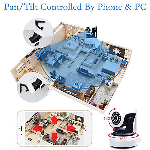 TWO - WAY AUDIO - Built-in speaker and microphone, not only can you see what is happening in front of your camera, also you can hear and speak.Tell your dog to get off the couch or tell intruders that the police are on the way.Remote Pan/Tilt rotate Wi-Fi/802.11/b/g/n,support dynamic IP. Pan: 270 degree; Tilt: 90degree; Inframed night vision function ;Multi-language, Firefox, Safari, Google browser.