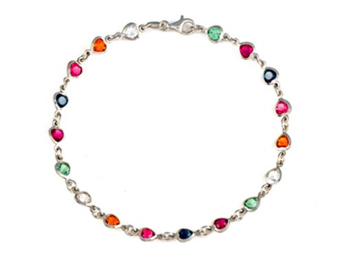 This attractive 10 Inches Hearts Ankle Bracelet with Simulated Stones, crafted in 925 Sterling Silver . This design measures 10.00 Inches long.