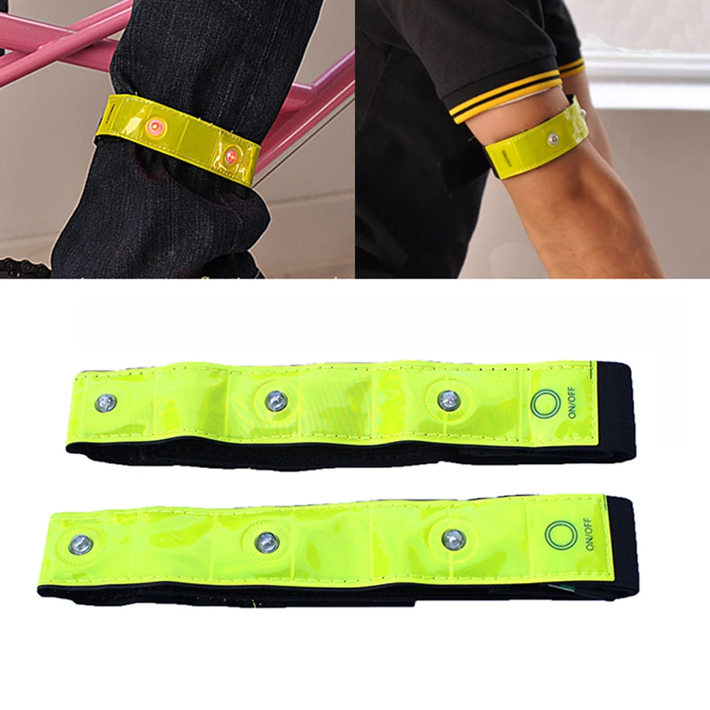 2 Piece Set Cycling Bike Bicycle Reflective Bands with 4 LED Lights