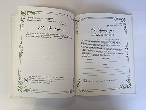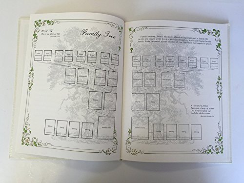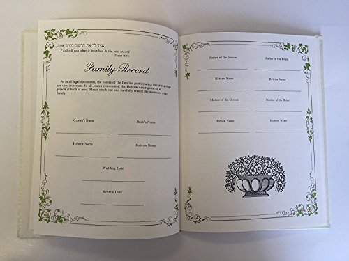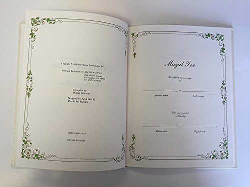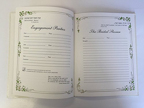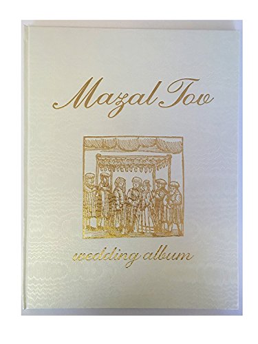 White Wedding Album Guest Registry Journal with Brass 'Mazel Tov' and Chuppah Scene Engraving