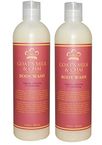 Nubian Goat's Milk and Chai Body Wash (Pack of 2) With Rose Extract and Vitamin B-5, 13 fl. oz. Each