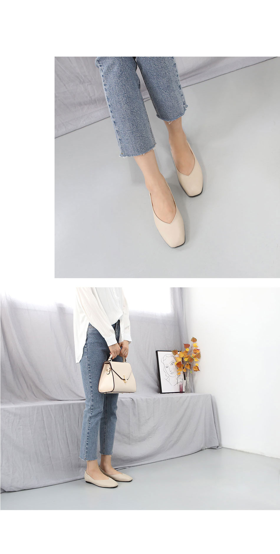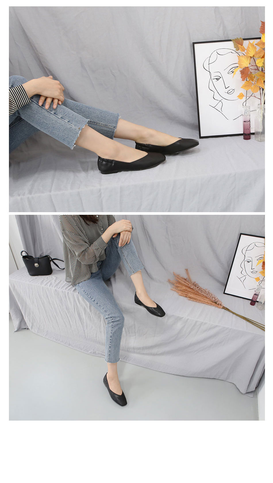 단정하고 세련된 느낌이 드는 플랫 제품이랍니다.