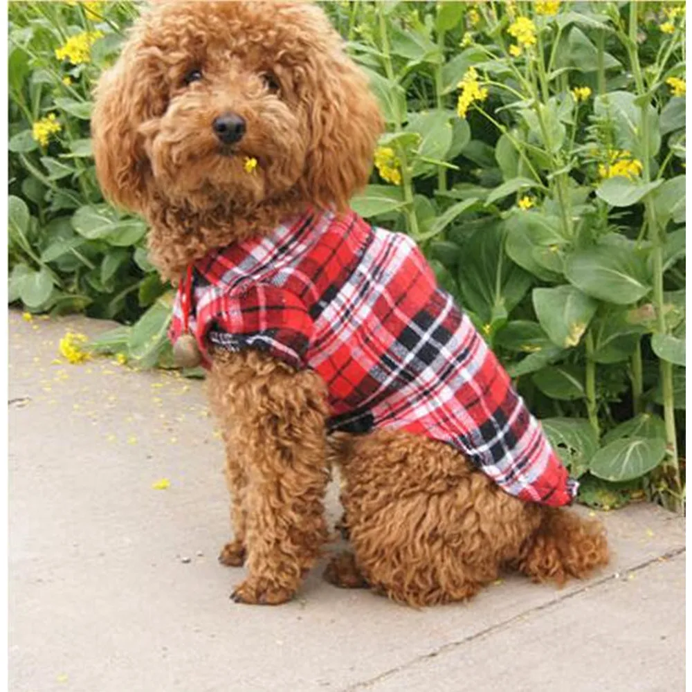Cute Puppy Plaid Shirts:Pet Dog Casual Apparel