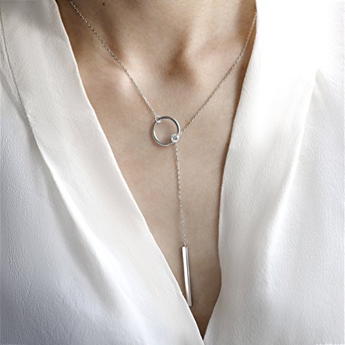 Dainty open circle cylindrical and bar Y necklace, minimal necklace suit for any occasion, simple and convenient to wear