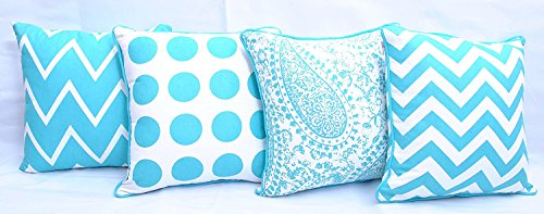 Turquoise Throw Pillow Cover (1 Pc) for Sofa Couch 16 X 16 Inches Chevron Design Printed in Turquoise on White 100% Cotton Fabric Soft Decorative Cushion Covers Collection by Value Homezz
