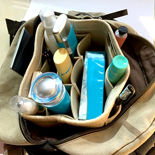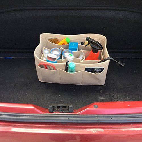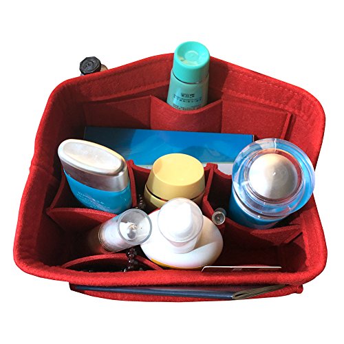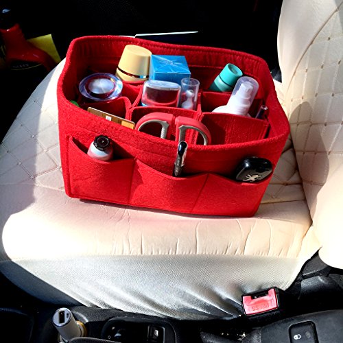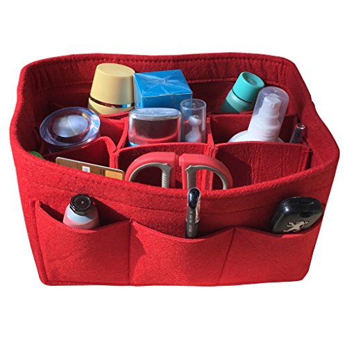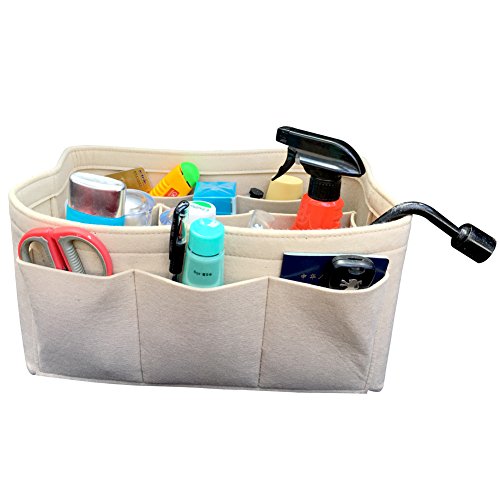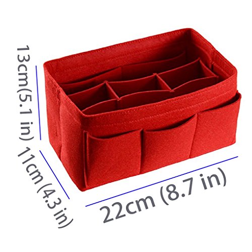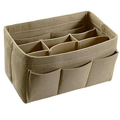 Product Description Product Name: Purse Handbag Organizer Material: Felt Fabric Dimensions: Small: (L)8.7 * (W)4.3 * (H)5.1 in (22 x 11 x 13 cm) Medium: (L)10.2 * (W)5.9 * (H)5.1 in (26 x 15 x 13 cm) Large: (L)13.4 * (W) 7.1 * (H)6.7 in (34 x 18 x 17 cm) Design: 10 Pockets Organizer Purse, 4 exterior pockets, 6 interior mesh pockets Used in Car, Bathroom, Travel, School, Shopping; Used as handbag organizer, purse organizer, diaper bag organizer insert, pocketbook organizer, Car organizer, Book storage, File organizer; Can storage wallet, calendar, glasses, pens, makeup case, iPad, MacBook Air, notebook, file folder etc. 0