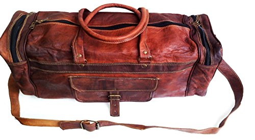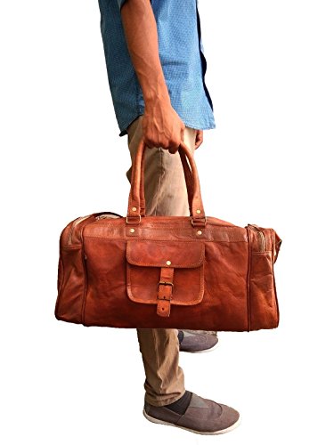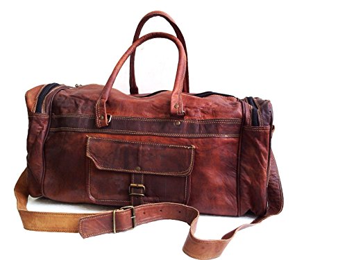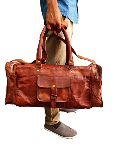 -. Brand : jaald -. Color : Brown -. Department : mens -. EAN : 0796520511781 -. Feature : Genuine leather duffle bag Ideal as a gym bag or a carry on travel bag - Medium sized / This Leather duffle bag has 100% genuine leather, thick hide with no bad smell assured. / This large duffle bag Has strong canvas inner lining, 2 Side pockets each & one main compartment. / Dimensions of this large leather duffle bag is : 20 (L) X 9 (H) X 10 (D) inches. 24 Inch. main compartment big enough for all need for gym, weekend trip and travel, Has handle & a 22" Shoulder drop / The hardware used for this duffle gym bag for men /women is heavy duty and will last for a long time -. ProductGroup : Apparel -. ProductTypeName : LAGE -. Size : 20" -. Title : 20" Mens Genuine Leather Duffel Gym Large Travel Weekend Sports Lage Bag -. UPC : 796520511781