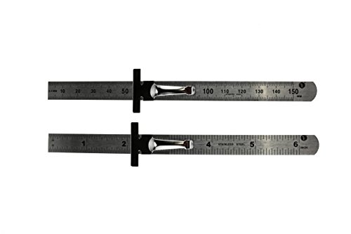 SE 925PSR-2 2-Piece SAE & Metric Ruler Set with Detachable Clips, Stainless Steel