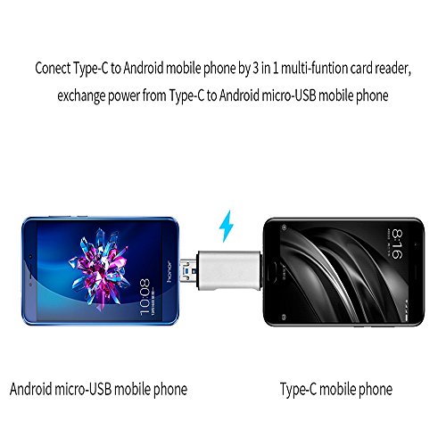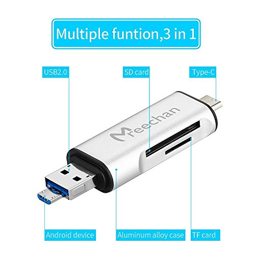 3 in 1 Memory Card Reader, Mreechan Micro SD / TF / SD Card Reader, USB-A 3.0 & Micro USB & USB Type-C with OTG Function for Smartphones / Tablets / Notebooks/ PC etc (silver)