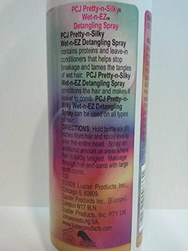 ReleaseDate : 2015-01-13 Studio : Atlas Ethnic Publisher : Atlas Ethnic Binding : Health and Beauty Product Description Luster's Pretty-N-Silky Wet-N-EZ detangling spray releases tangles, stops breakage. Leave in conditioner contains proteins and leave in conditioners that help stop breakage and tames the tangles of wet hair. Detangling spray conditions the hair and makes it easier to comb. Can be used daily on all afro and mixed race kids hair types. 0