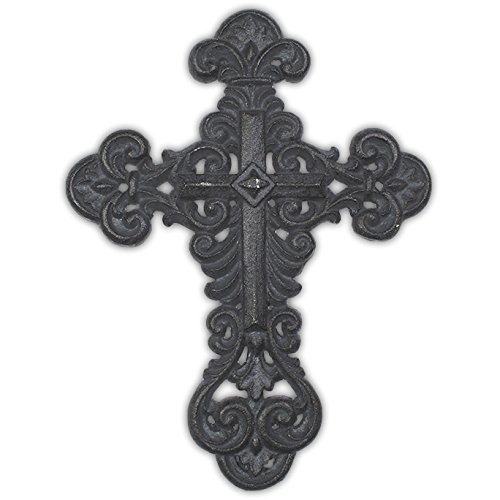 Carson 10" Cast Iron Fleur-de-Lis Wall Cross (Black)