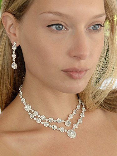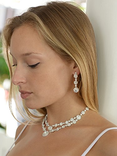 Mariell Glamorous Double Strand Rhinestone Necklace and Earrings Set; Best Selling Double Strand Necklace with Matching Shimmery Dangles; Head Turning Bling at a Fabulous Low Price