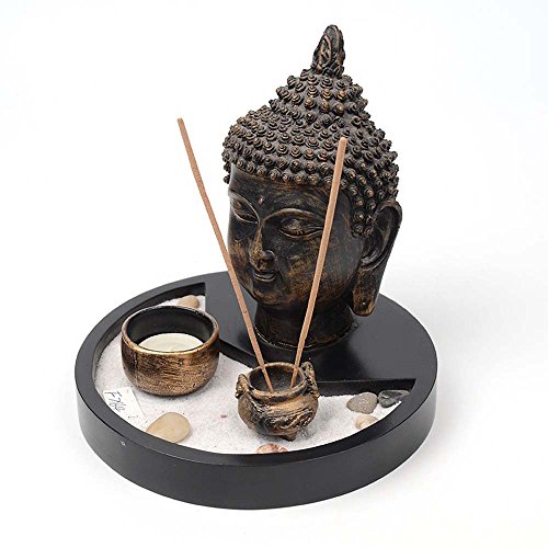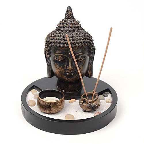 Thai Buddha Statue Zen Garden Tealight Candle Holder w/ Incense Burner