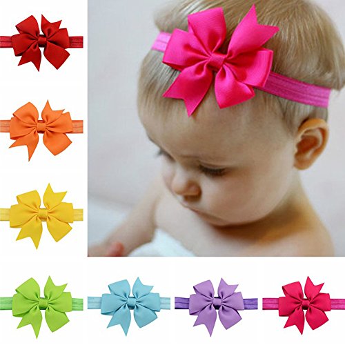 baby headbands with bows ,we put them in thin hair they don't slide out, they stay put,very well made with no freying ends or loose strings anywhere.This is a very nice package of quality hair bows.Perfect for newborns,toddlers,baby girls,little girls, big girls,women .