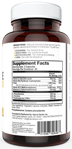 -. Title : Dopamine Brain Food Supplement - All Natural Neurotransmitter Support - For Mental Alertness, Improved Learning, Attention, Concentration and Confidence 60 vegetarian capsules