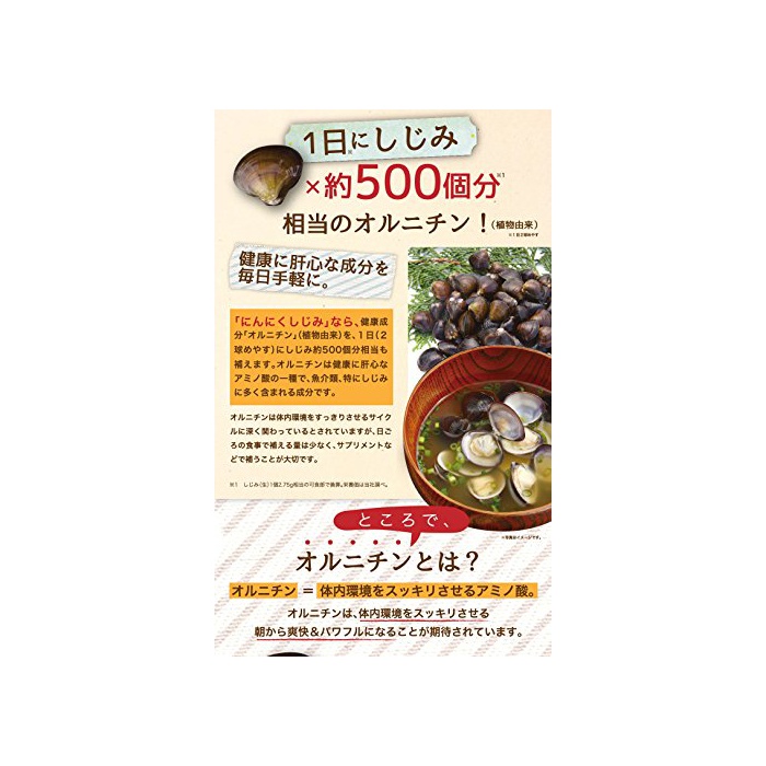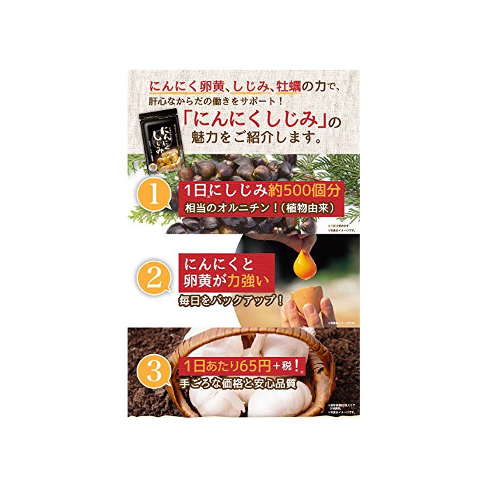 바지라기의 건강 성분「오르니틴」를,1일에 바지라기 약500 개분상당(2 구# 쉽다)도 보충할 수 있습니다.오르니틴은 건강하게 중요한 아미노산의 일종으로,어패류,특히 바지라기에 많이 포함되는 성분입니다.마늘에 포함되는 냄새난 성분「개미 신」와,계란 노른자에 포함된다「비타민B1」를 편성하는 것에 유용 성분이 서로 작용하고, 스태미너 파워가 지속.게다가건강하게 중요한 아미노산「오르니틴」와의 트리플 파워에 매일의 건강을 서포트 합니다.