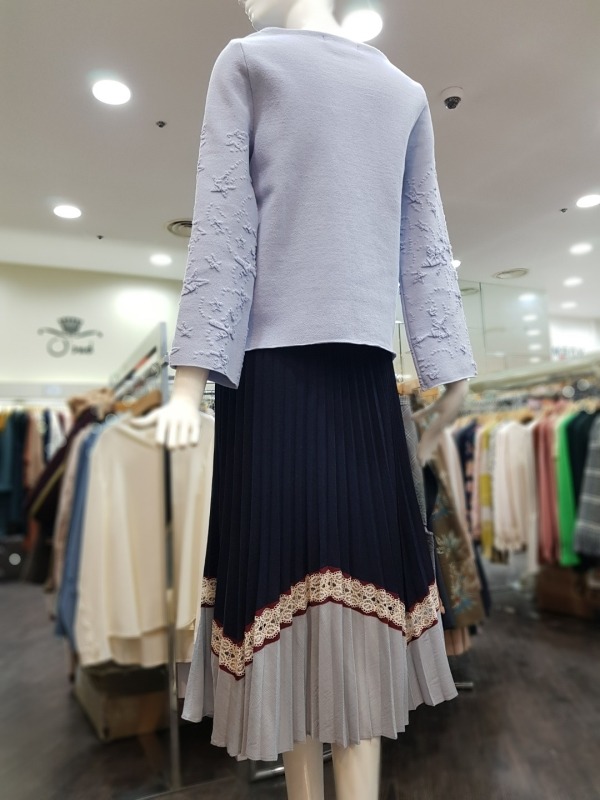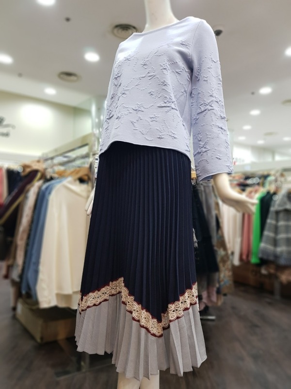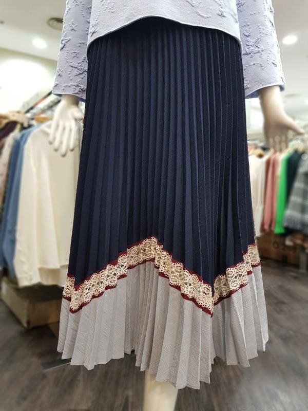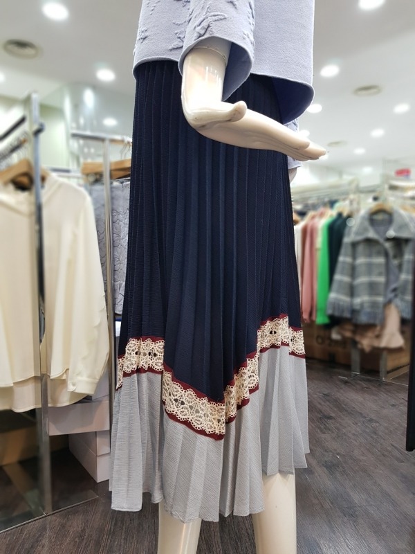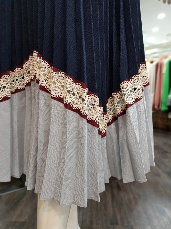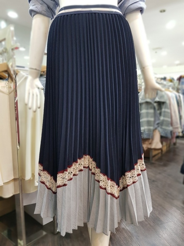 총장 79CM 정도의 주름 스커트로 투톤 배색과 레이스가 포인트 되어 유닉크함을 더했으며, 솔리드한 컬러감으로 봄에 한개만 입기에도 좋습니다