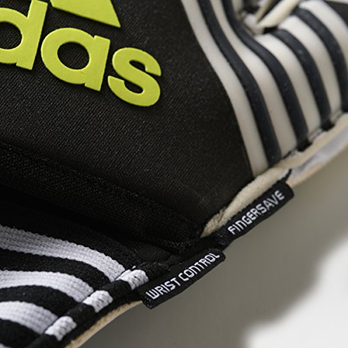 Studio : Adidas Publisher : Adidas Binding : Misc. Product Description ? ZONES: Specifically engineered areas on the glove to perfectionize your game. ? EVO ZONE TECH: Two latex foams engineered together providing seamless transition and one homogenous palm. ? EXCHANGEABLE FINGERSAVE: Provides superb support while catching, holding and throwing the ball, all spines are separately exchangeable. ? EXCHANGEABLE WRIST CONTROL: Stabilizes and supports the wrist while catching and diving for the ball. Element is removable. ? CLOSE-FITTING BANDAGE: Without restrictive seams, a revolutionary bandage which perfectly fits most peoples' wrists. ? STRETCH-STRAP: Individual fit adjustments with best stabilisation characteristics are assured by this new strap. ? 68% latex / 32% elastane foam 0