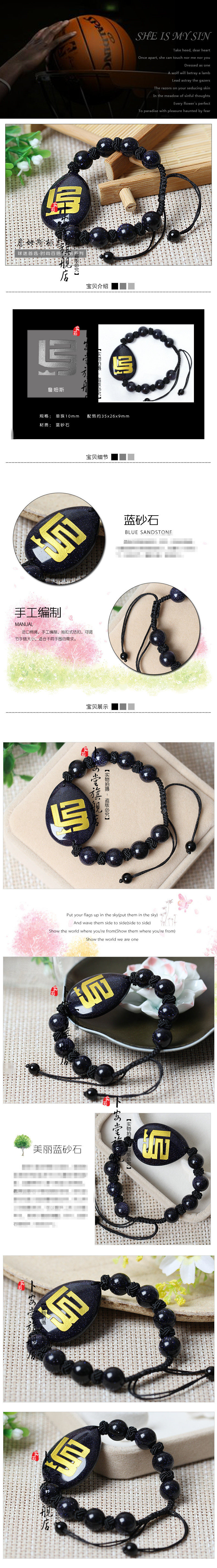 开光蓝砂石手链NBA球迷用品骑士队詹姆斯蓝砂石手链