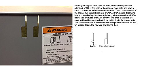 -. Binding : Office Product -. Brand : File Bar Factory -. Feature : Side to side filing in HON Lateral Metal File Cabinets mfr after AP.R.Il 1994 ONLY / Fits cabinets that are 30",36" and 42" exterior width / Quality constructed to specifications / The ends of the rails are more solid and have a small notch cut out to fit into the drawer slots. / The slots on the side of the drawer that accept these rails are "b" and "d" shaped depending how you are viewing. -. Label : File Bar Factory -. Manufacturer : File Bar Factory -. Model : HN-NEW -. MPN : HN-NEW -. PackageQuantity : 2 -. PartNumber : HN-NEW -. ProductGroup : Office Product -. ProductTypeName : OFFICE_PRODUCTS -. Publisher : File Bar Factory -. Studio : File Bar Factory -. Title : HON Lateral File Bars (2 per set)