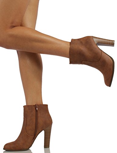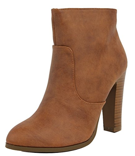 Delicious Women's Admit Almond Toe Chunky Wooden Heel Ankle Bootie, Taupe Faux Nubuck Leather, ...