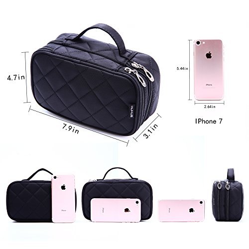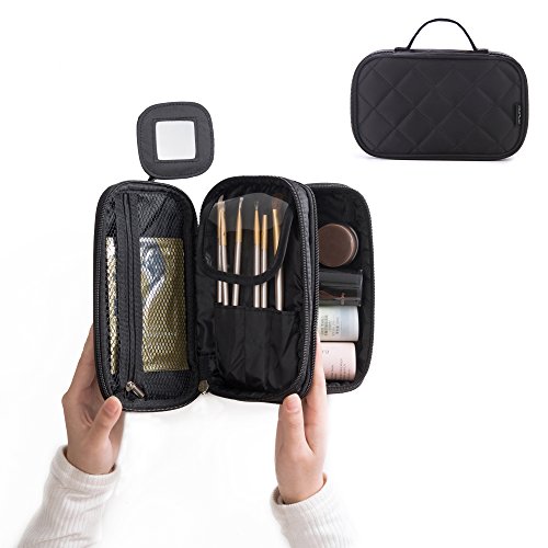 Portable Makeup Bag, WuHua Double Layer Cosmetic/Toiletry Brush Bag for Women, with Mirror Travel/Train Kit Organizer, Professional Makeup Pouch Purse for...