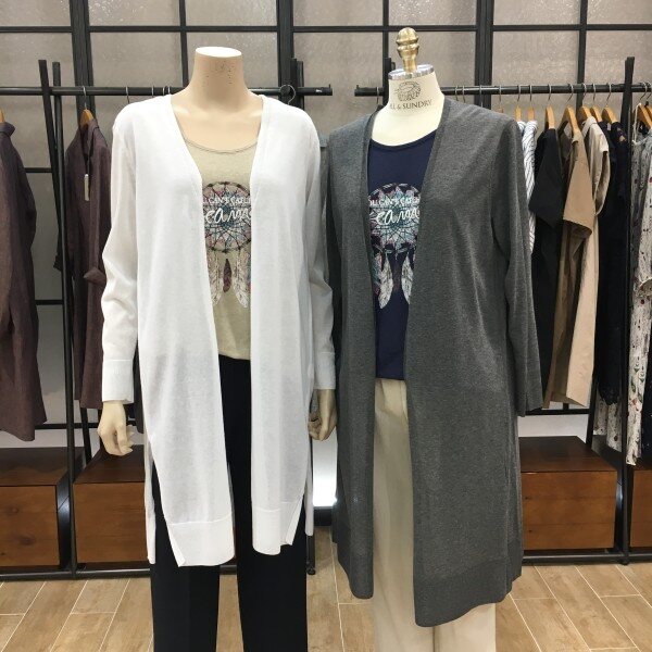더워지는 요즘 딱 입기좋은 숄가디건이에요^^ 깔끔한 네크라인을 따라 가볍게 흐르는 오픈느낌의 가디건입니다. 입기좋은 품과 롱한기장감으로 입었을 때 부해보이지 않아 좋아요. 힙을 충분히 가리는 기장감에 사이드에 슬릿을 더해 걸을때마다 살짝씩 보이는 다리라인이 매력적이랍니다. 노버튼으로 깔끔하게 툭 떨어지는 핏감이 매력적이구요.짱짱한 소재로 소매롤업을 하면 좀더 스타일리시하게 연출이 가능하답니다. 지금부터 가볍게 툭 걸치기 좋은 가디건! 총장길이는 66사이즈 기준으로 97cm 입니다.