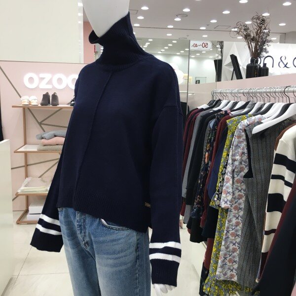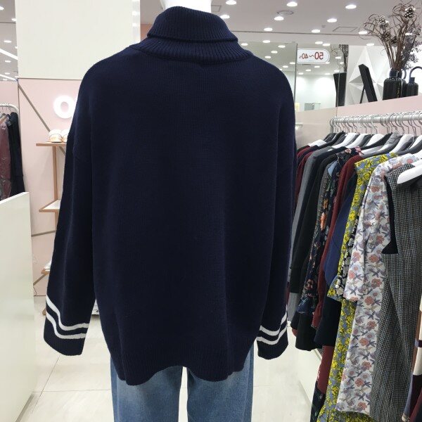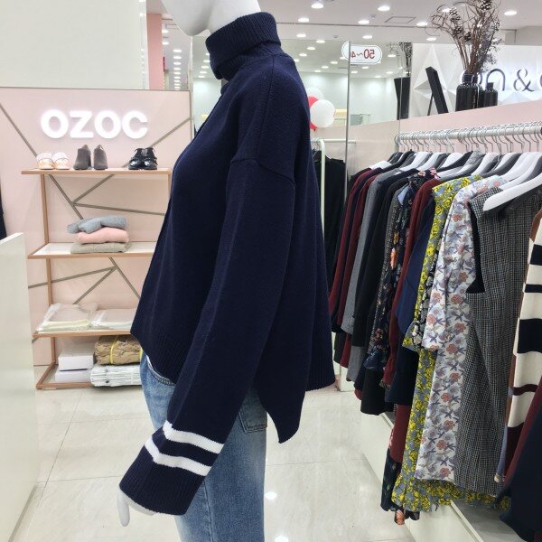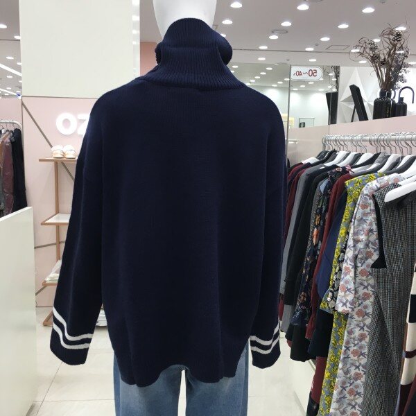 오버사이즈의 터틀넥 니트 소개해드려요.소매 끝 부분에 라인 디테일이 있어 기본이지만 포인트로 활용하기 좋으며 옆라인 트임이 있어 어떤 하의와도 잘 매치됩니다.