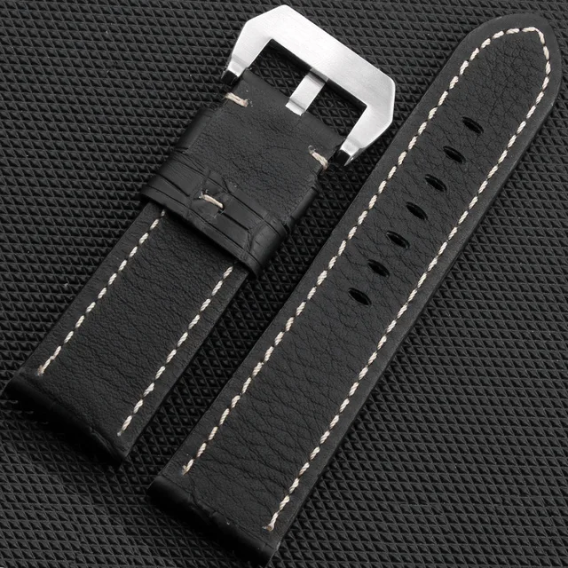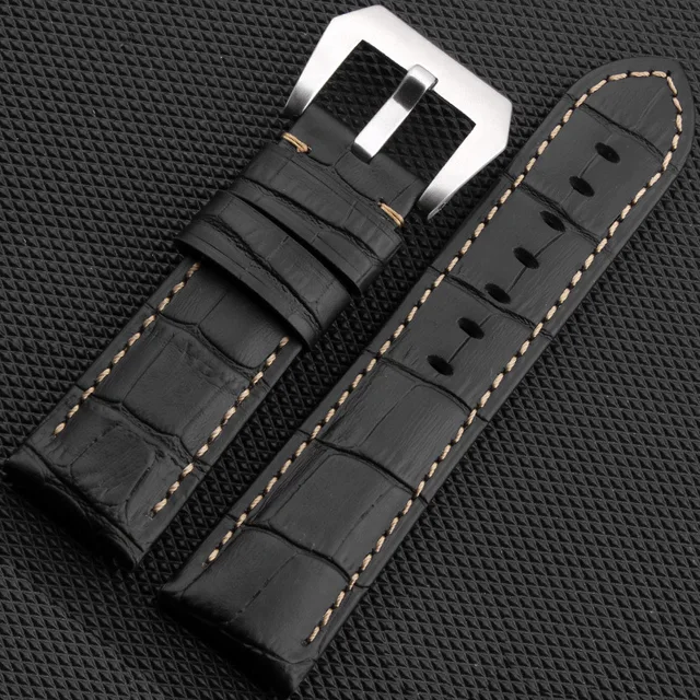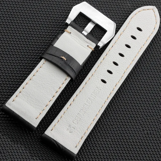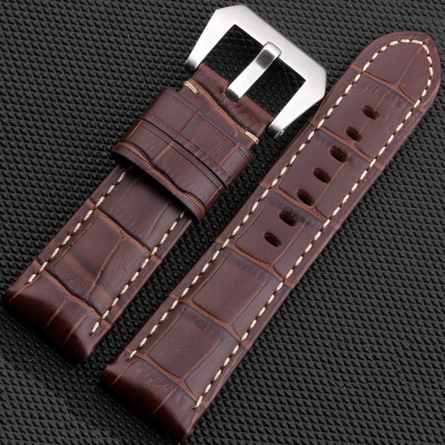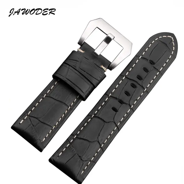JAWODER 시계 밴드 22 미리메터/24 메터 남성 블랙/브라운 대나무 곡물 정품 가죽 시계 스트랩 스테인레스 스틸 실버 핀 버클 팬
