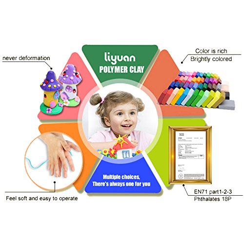 24 Colors Polymer Clay Liyuan DIY Soft Modelling Clay Set for Child Nontoxic Malleable Toys ,5 pcs Modeling Tools with Accessories