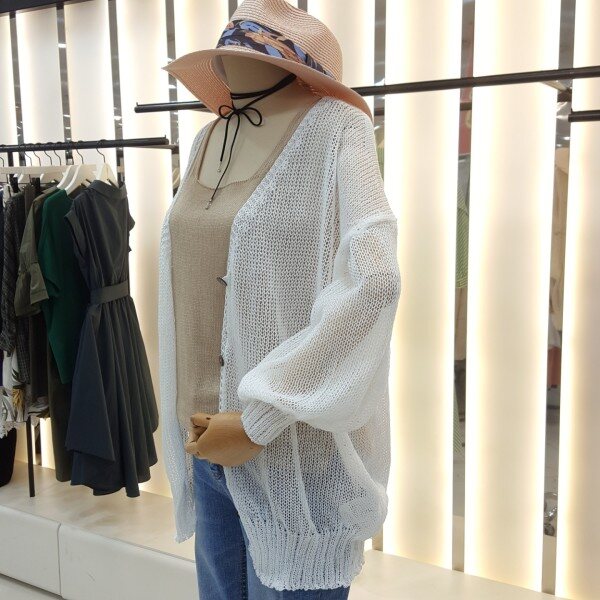 심플한 와플 짜임이지만 퍼프소매로 밋밋하지않은 가디것입니다.어떤 아이템과도 매치하기좋으며 디자인나 퀼리티가 높은 제품입니다.