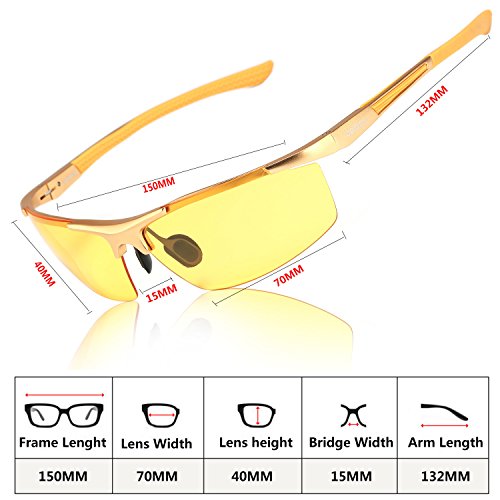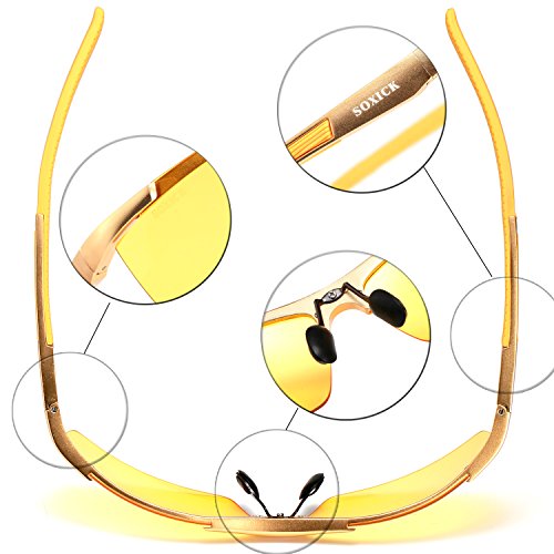 Product Description Please choose SOXICK Fashion Driving Polarized Sunglasses, For Fishing, Golf, Cycling, Running, Driver/Driving Sunglasses and all Active Outdoor lifestyles! ?【TOP QUALITY MATERIALS】 Aluminum-Magnesium Frame(Lightweight, Strong and High Elasticity),only 28g.High quality resin from German technology and Shatter-Proof Lens can also be used as safety glasses. ---- Aluminum-Magnesium Frame ?【SOXICK POLARIZED LENS】 Can filter out high-glare light from oncoming headlights, street, and other reflective surfaces. These special lenses make colors clearer and objects brighter, so you can maintain your focus on the road. Yellow filter also helps to soften harsh, bright lights and relieve eye strain, so you can drive at night with more comfort.----Anti-reflective Resin Lens ?【APPLICABLE SCENARIO 】 Lightweight alloy designed and HD driving glasses are ideal for motorcycles, cycling, driving, running, fishing, racing, skiing and climbing, trekking or other outdoor activities enthusiasts.[ Especially at rainy day, cloudy day or at night ] ?【GERMAN MILITARY QUALITY GUARANTEE】 SOXICK is dedicated to satisfy our esteemed customers. We provide 30 Day refund and lifetime Warranty on Frame Lens. ?【BEST LIGHT ENHANCING LENS TINT (Pale Yellow Lenses)】 Enhance contrast in low to extremely low light conditions, haze, etc. Some of our customers say Knight Visor glasses combat eye fatigue, reduce drowsy driving at night and maintain your focus on the road. ?【COMFORTABLE TO WEAR】 This classy and Fashionable glasses is designed to sit firmly on your face even when you're on high intensity outdoor activities without causing any inconvenience of any form. 0