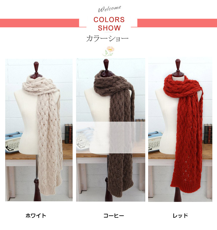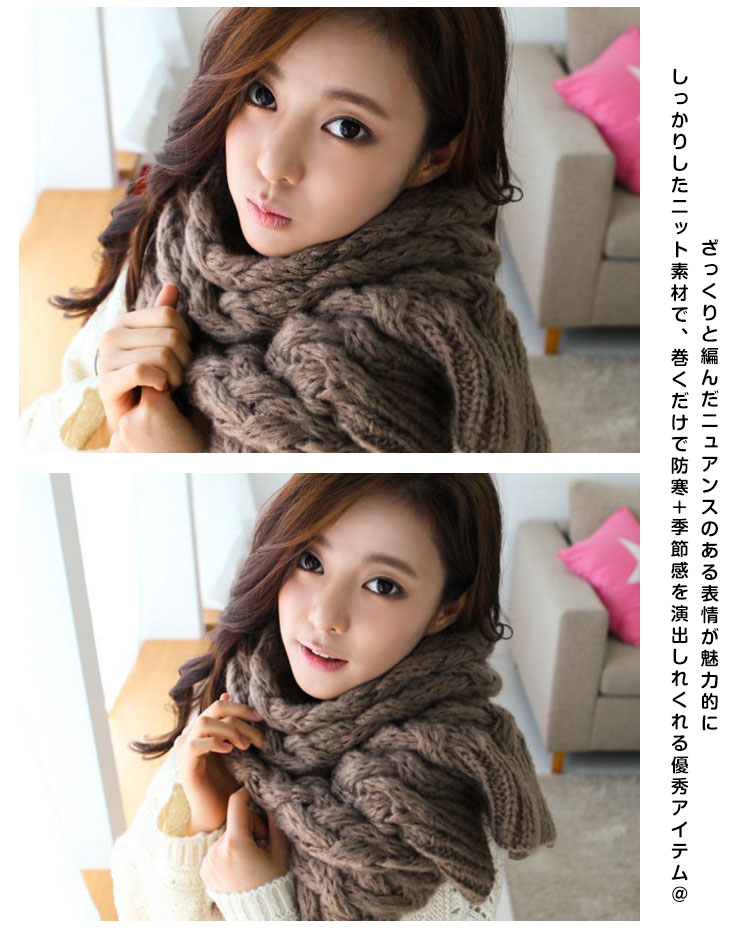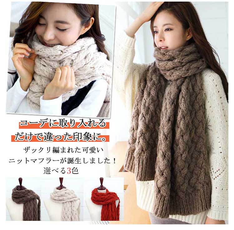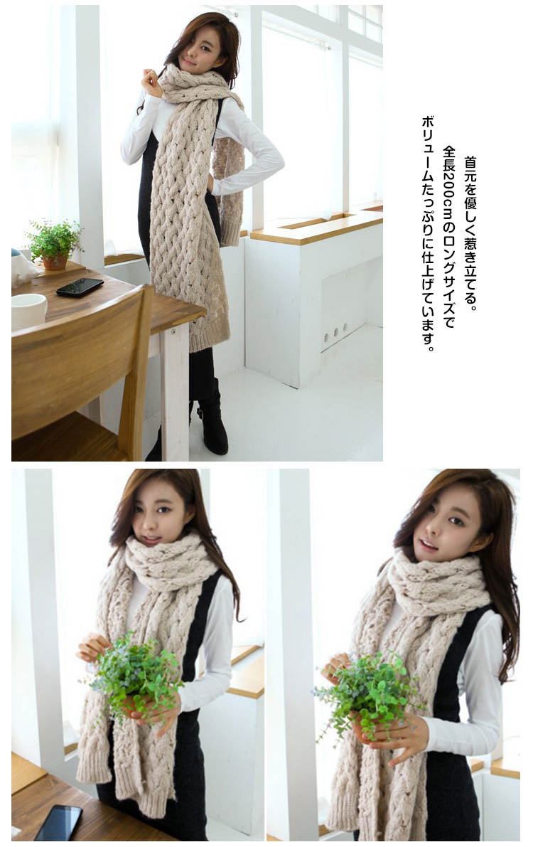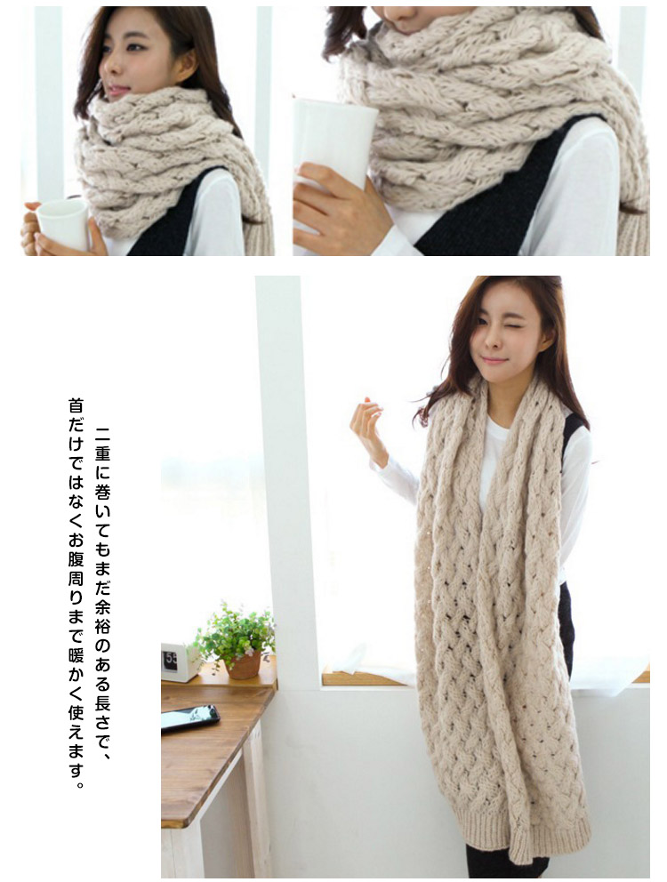 | コーデに取り入れるだけで違った印象に。ザックリ編まれた可愛いニットマフラーが誕生しました!首元を優しく惹き立てる。全長200cmのロングサイズでボリュームたっぷりに仕上げています。二重に巻いてもまだ余裕のある長さで、首だけではなくお腹周りまで暖かく使えます。ざっくりと編んだニュアンスのある表情が魅力的にしっかりしたニット素材で、巻くだけで防寒+季節感を演出しれくれる優秀アイテム@ | |