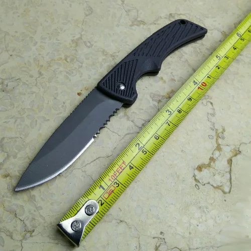 상품 내용 작은 크기 접는 칼 톱니 모양의 캠핑 생존 포켓 나이프 7Cr17mov 블레이드 고무 핸들 14.5 센치메터 상자 및 수동