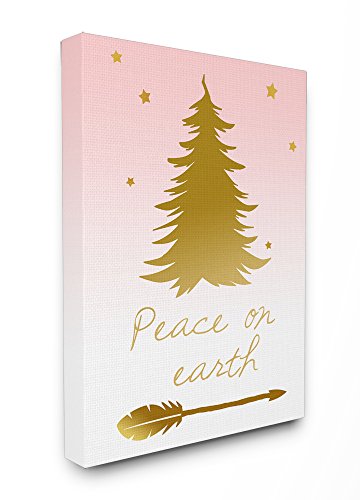 Stupell Home Décor Coral and Gold Peace On Earth With Tree Oversized Stretched Canvas Wall Art, 24 x 1.5 x 30, Proudly Made in USA