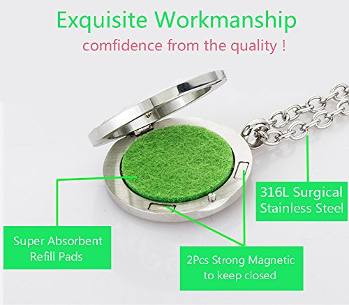 JENIA's aromatherapy oil diffuser magnetic locket pendant with free 24" chain necklace offers immense benefits such as helping to carry along with you the sweet fragrance of your favorite essential while you go about your day-to-day activities. It also contributes to keeping you calm during your plane ride and helping you maintain absolute focus and peace of mind when you need them the most!