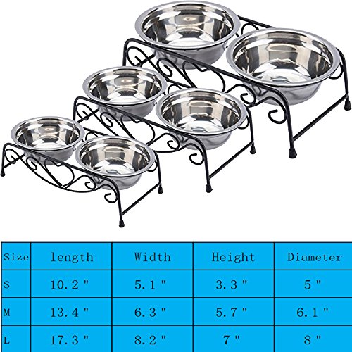 Studio : PetCul Publisher : PetCul Binding : Misc. Product Description Features: Made of high quality stainless steel material, durable. Multi-purpose double diner can be used for either food, water or both. Two bowls design,you can put the food on the one side, and put the water on the other side. Perfect for the small or middle-sized dog. They can easily access the food. Material:Stainless steel : Size: S:10.2" X 5.1" X 3.3"(appr.) M:13.4" X 6.3" X 5.7"(appr.) L:17.3" X 8.2" X 7"(appr.) The diameter of bowl: S:5.3"(appr.) M:6.1"(appr.) L: 8.1" (appr.) Capacity: S: Could hold 1.3 cups/12oz per bowl M: Couldhold 3.0 cups/28oz per bowl L :Could hold 7.4 cups/64oz per bowl Package included: 1 Set Pet bowl(include one stand and two bowls) 0