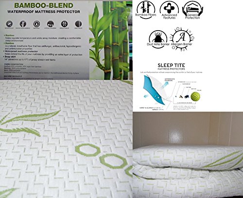 -. Feature : Fully-elasticized Fitted Sheet Style SIZES (TWIN 39"X 76" 14") (FULL54" X 76" X14) (QUEEN 60" X 80" X 14") (KING 78" X 80" X 14") / Soft, breathable fabric creates a cooler, more comfortable sleep surface - no crinkling sound or plastic feel / Protects Against Dust Mites, Fluids, Urine, Perspiration, Allergens And Bacteria / features deep pockets for a smooth, secure fit on mattress depths up to 14" and will not change the feel of your mattress / Surface: 60% Polyester, 40% rayon from bamboo - Backing:100% Polyurethane - Skirt: 100% polyester