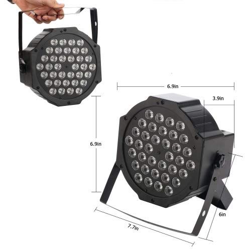 Item Weight:1.83 pounds Product Dimensions:6.9 x 6.9 x 3.9 inches Shipping Weight:1.83 pounds (View shipping rates and policies) ASIN:B07D48FHST Item model number:36RGB Batteries:2 CR2 batteries required. (included) Customer Reviews:4.2 out of 5 stars 21 customer reviews 4.2 out of 5 stars Best Sellers Rank:#27,372 in Musical Instruments (See Top 100 in Musical Instruments) #482 in Musical Instruments > Live Sound & Stage > Lighting Equipment & Accessories > Stage Lights #9,645 in Musical Instruments > Recording Equipment Date first listed on Amazon:May 16, 2018