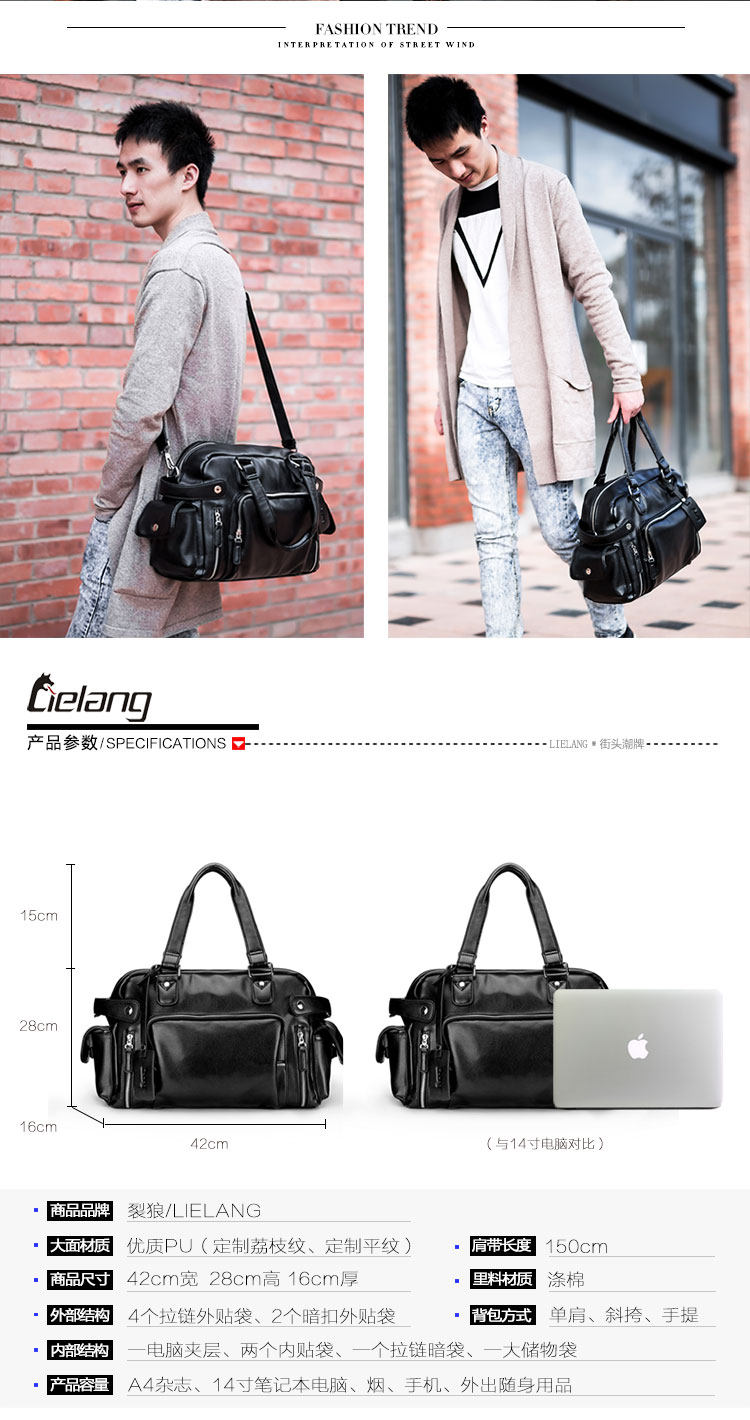 Style: shoulder bagBackpack way: Shoulder Messenger portableTexture: PULining Material: PolyesterStrap styles: single