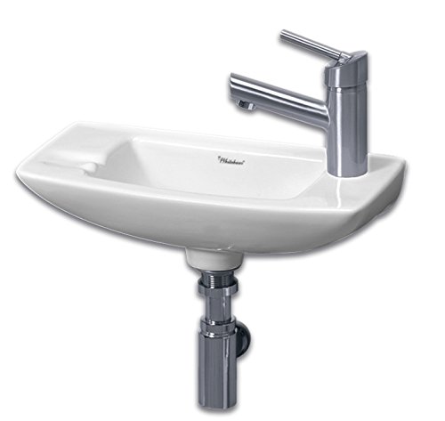 Whitehaus WH1-103R-WH Isabella 17-1/2-Inch Small Wall-Mount Lavatory Basin with Center Drain and Right-Hand Faucet Drilling, White