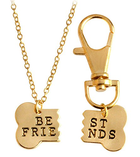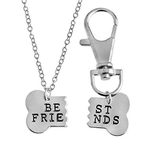 2pcs Friendship Jewelry Dog Bone Best Friends Charm Necklace Keychain BFF Bones Design