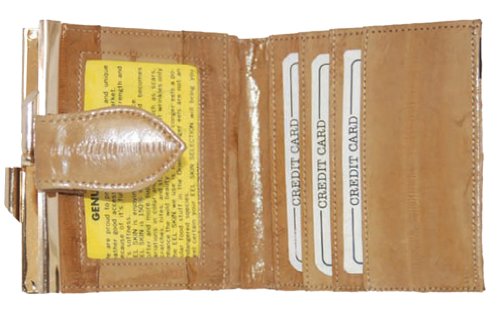 -. Feature : Genuine Eelskin leather / Bi-fold Wallet / Credit Card Slots / External pull out pocket with twist snap enclosure