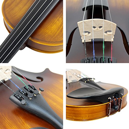 -. Feature : Hand carved solid spruce top; rosewood fingerboard, pegs and chin rest; alloy tailpiece with 4 integrated fine tuners / Handcrafted maple wooden neck, back and sides to strengthen the stability of these parts and offers excellent acoustical properties and good response / Includes everything to start to learn the violin and them some: shaped lightweight carrying case, shoulder rest, music sheet stand, electronic tuner, one ebony frog Brazil wood stick violin bow, rosin, an extra set of strings, polishing cloth, Mute, violin bow collimator / Perfect for Beginners, New Players and Students / We carry a wide array of colors in 4/4 Full Size Violins: Natural, Natural Antique, Black, Blue, Green, White, Pink, Red, and Purple