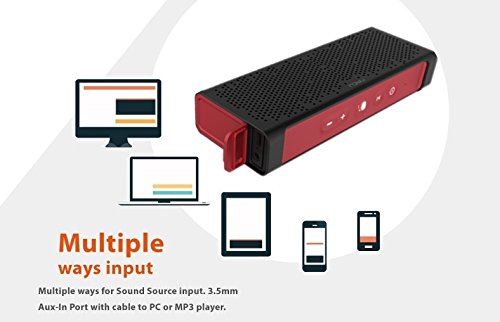 Bluetooth low power consumption, stable connection, fast pairing and highly compatible to all kinds of devices with Bluetooth function; Exquisite aluminium alloy cover; Convenient controlling via the phone or the Bluetooth speaker; Multiple input sources. With a 3.5mm Aux port; Build in 1800mAh PLB, 8-12 hours nonstop happy time; Automatic power off in 15 minutes without any operation.