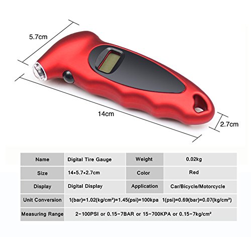 Tire Gauge, Life Magician Digital Tire Pressure Gauge 100 PSI 4 Settings for Car Truck Bicycle with Backlit LCD and Non-Slip Grip, Red