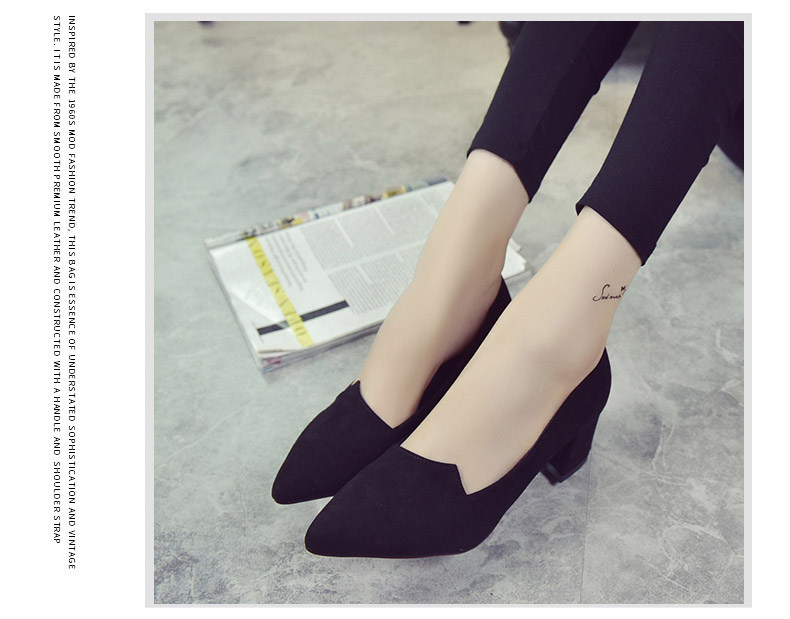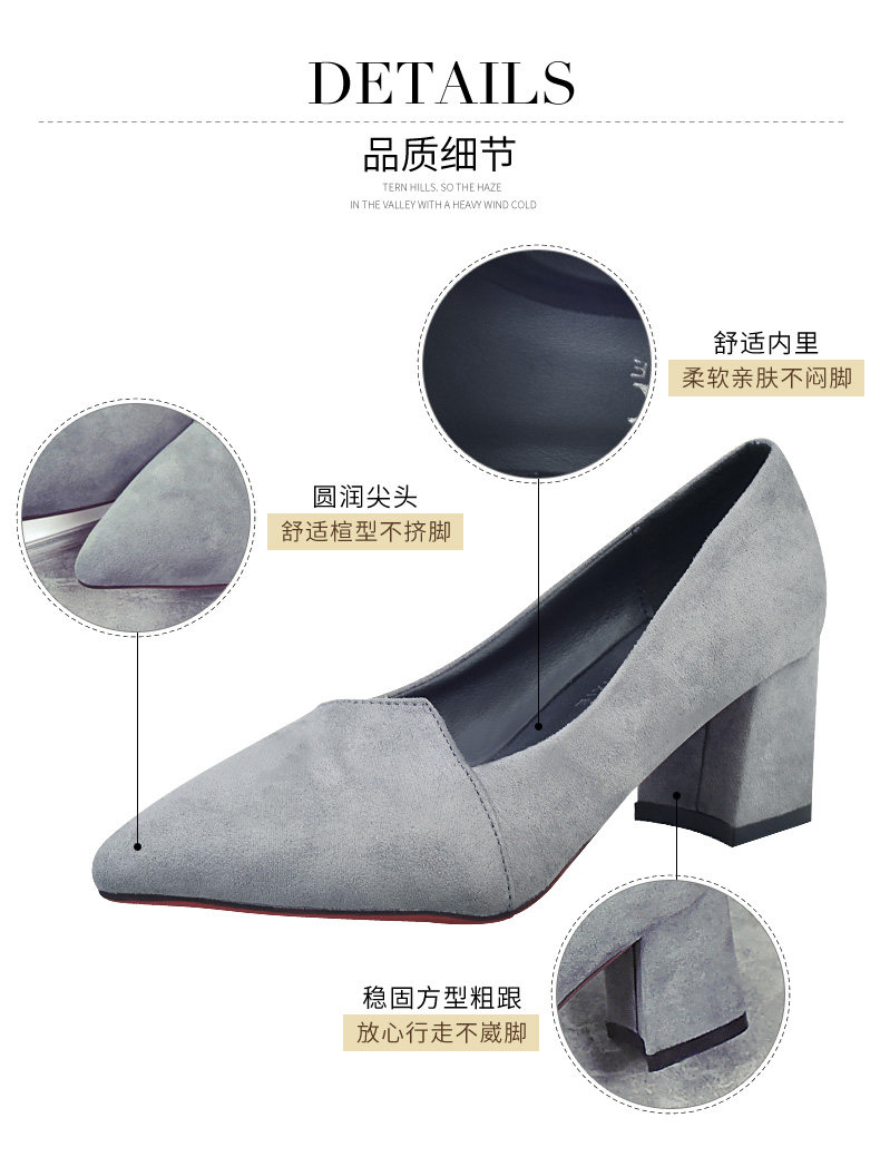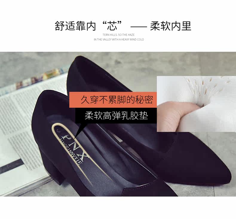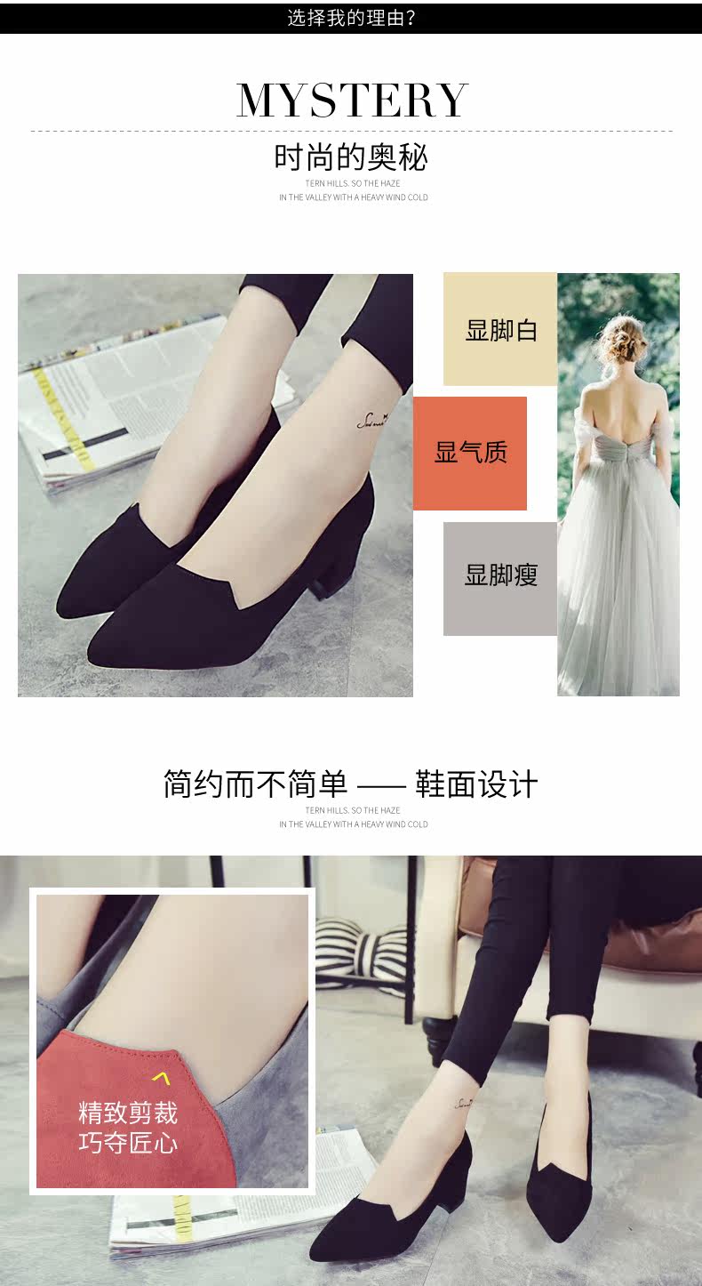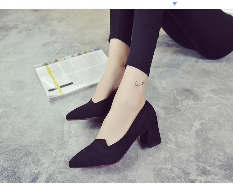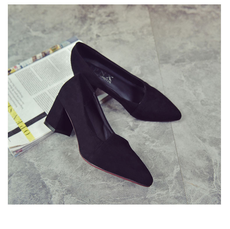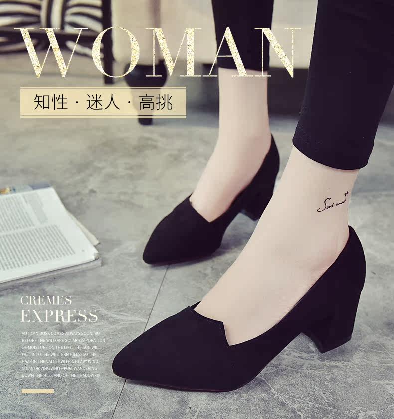 韩版粗跟高跟鞋女夏秋季新款尖头黑色工作鞋时尚百搭休闲女鞋子