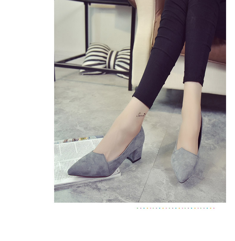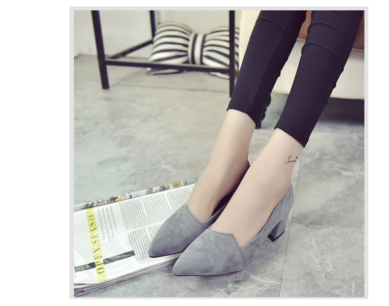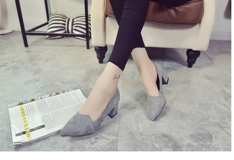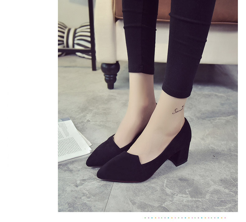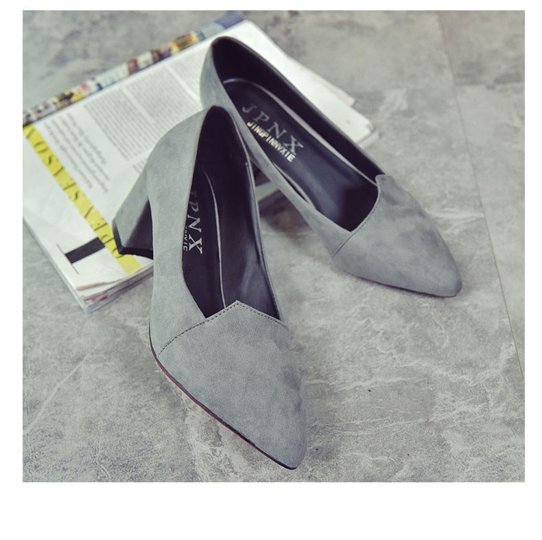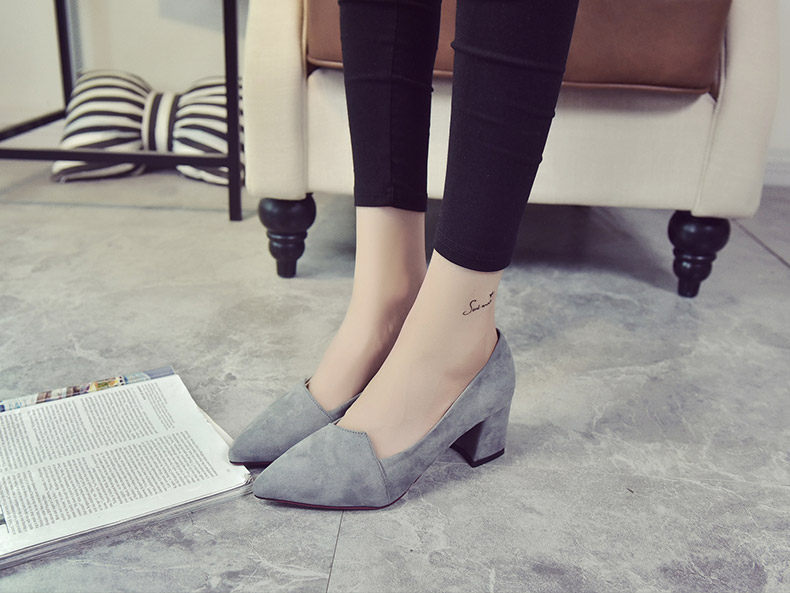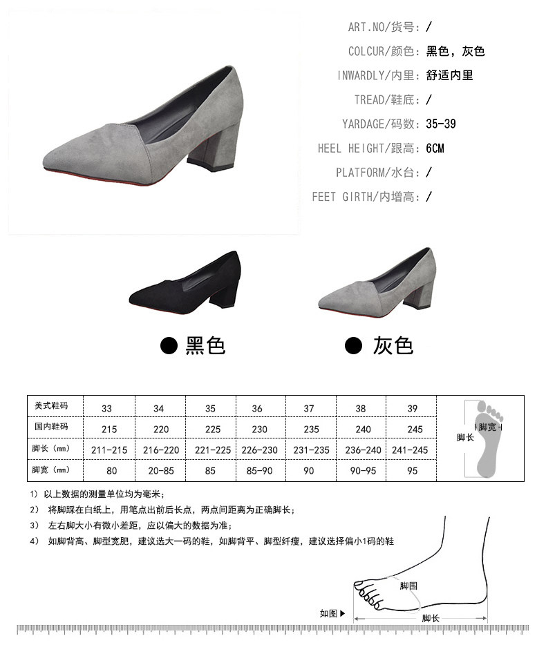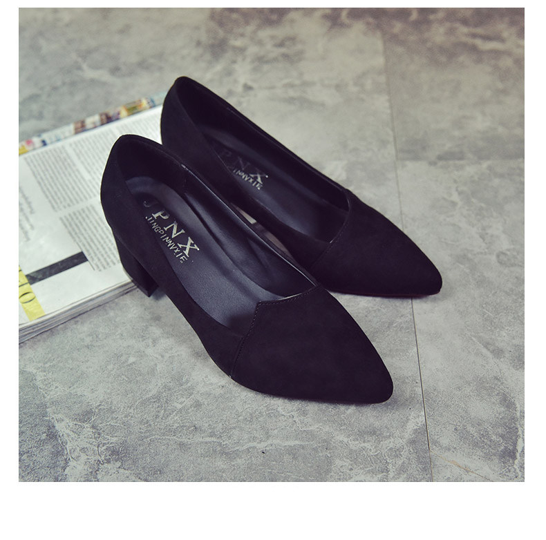 韩版粗跟高跟鞋女夏秋季新款尖头黑色工作鞋时尚百搭休闲女鞋子
