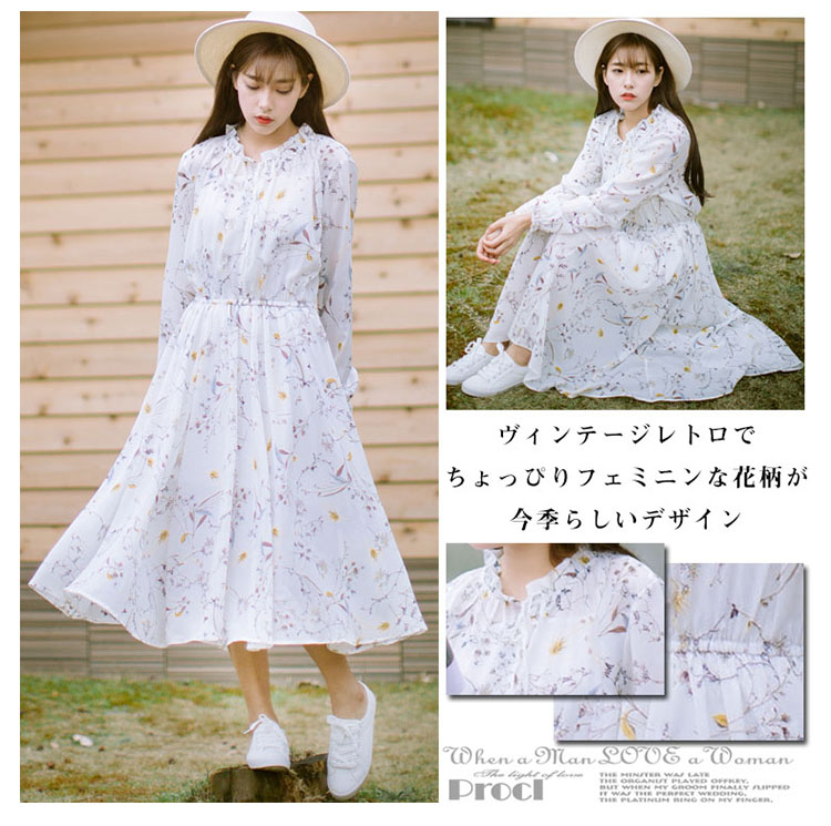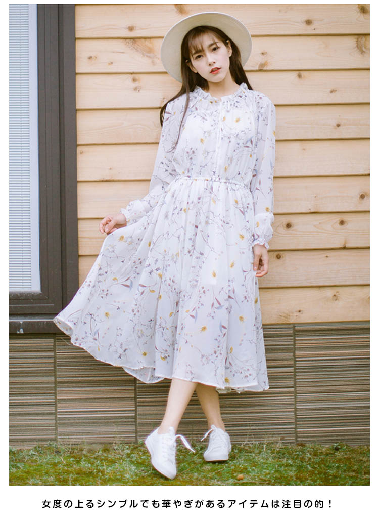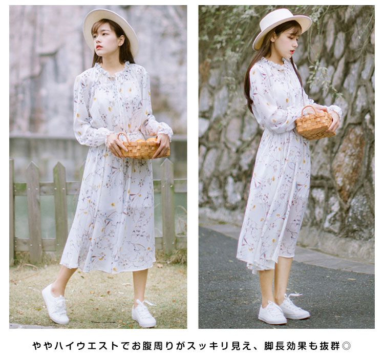 | ヴィンテージレトロでちょっぴりフェミニンな花柄が今季らしいデザイン。柔らかいシフォン素材だから、ふわっと揺れるエアリー感がとにかくキュート!ややハイウエストでお腹周りがスッキリ見え、脚長効果も抜群◎膝を隠すミモレ丈は大人の上品さを感じさせます。女度の上るシンプルでも華やぎがあるアイテムは注目の的! | |